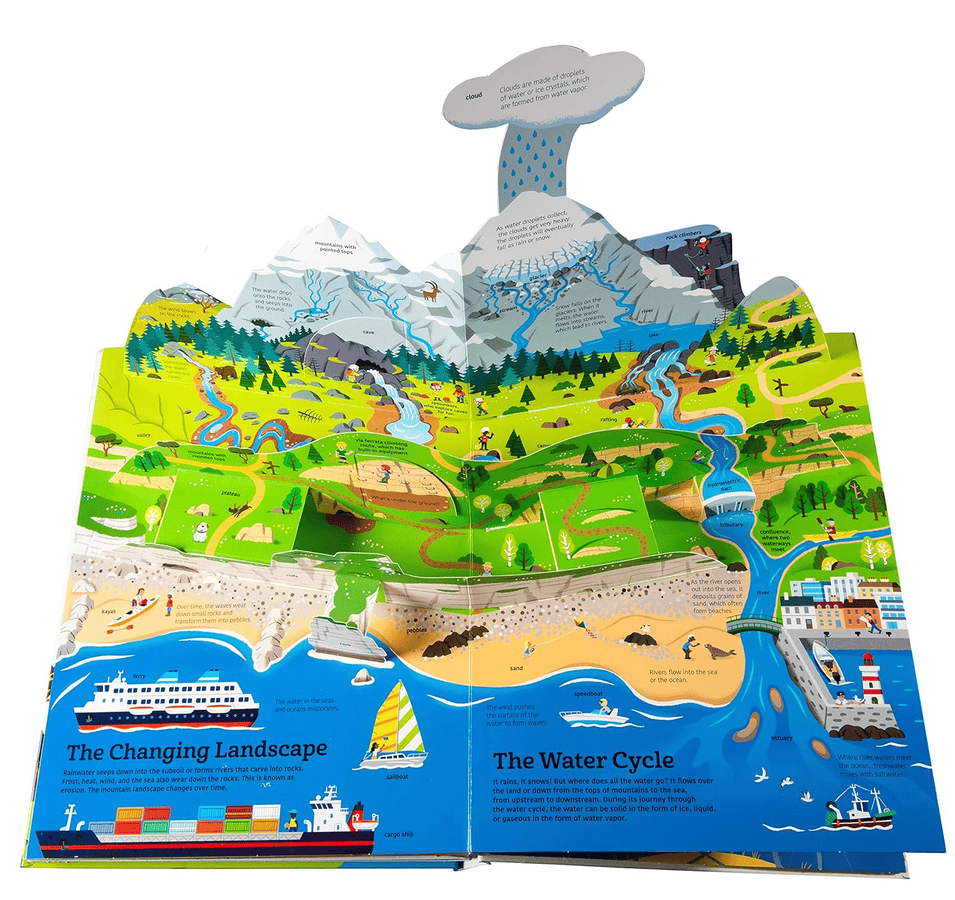 Learn all about our planet’s geology, geography, atmosphere, weather, and more: Magma erupts from a volcano, turbines harness the power of wind… Best of all, lots of flaps, popups, pull-tabs, and rotating wheels bring mountain ranges, continents, and oceans to life. Readers will see all the layers of the earth, learn how water flows from mountains to rivers to oceans, and understand our climate and weather patterns. Any child who has interested in nature and science will adore this extraordinary look at the world around us.